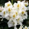 Rhododendron ‘Cream Crest’ Dwarf. Clusters of cup shaped bright creamy -white flws, Apr-May. Compact habit, attractive glossy foliage. Ht 3ft. Ideal for the larger rock garden. Likes sun. Peaty, well drained soil, sun/ part shade.
