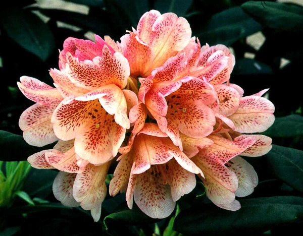 Rhododendron ‘Firelight’ A compact Hybrid Rhododendron, Firelight has exotic cream flowers with red speckles in May. These stunning flowers make this variety a show piece in any garden. Grows to 1.2m (3-4ft). Acid soil.