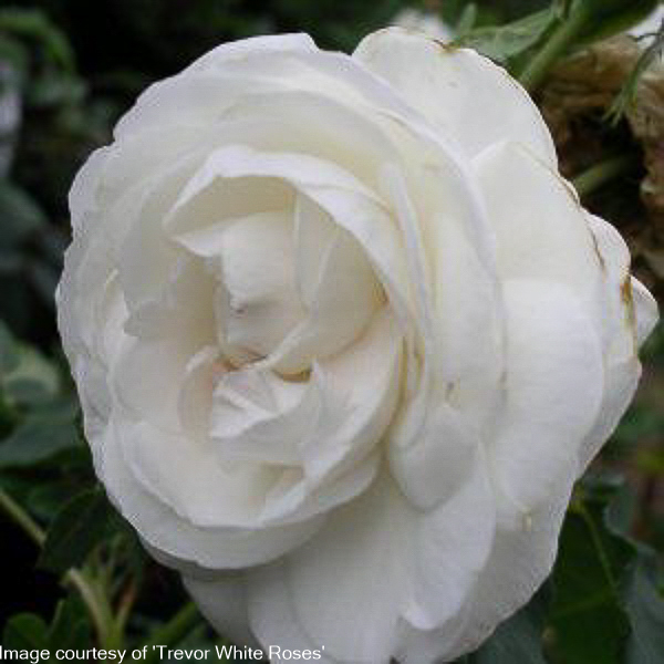 Rosa ‘Boule De Neige’ ‘Shrub rose: Bourbon’ Small clusters of ivory-white camellia flowers abundantly produced. Very scented. Slender growth, dark foliage. Ht 4ft, spr 3ft. Well drained, fertile soil, sun/ part shade.