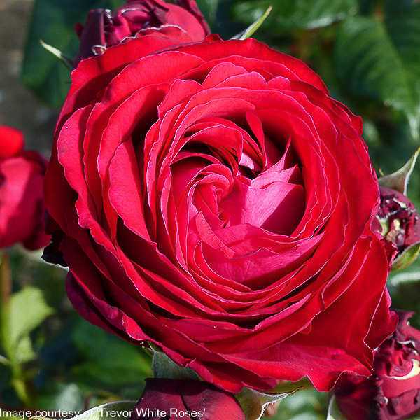 Rosa ‘Catherine’ Reneissance Rose – beautiful elegant clusters of double crimson blooms. Highly fragrant. An upright grower that is a good variety for cutting. Flowers from June – Oct. Eventual Size 100 x 60cm