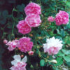 Rosa ‘Felicite Et Perpetue’ ‘Rambler’. Attractive, small foliage. Large clusters tightly packed with pompoms of creamy white, July. Healthy strong growth forms dense mass. Primrose scent. Ht 20ft. Well drained, fertile soil.