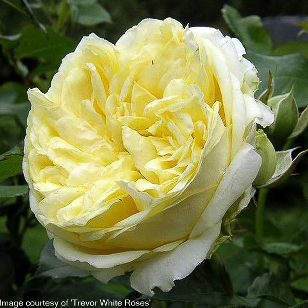 Rosa ‘Mary’- Clusters of very double old fashioned style quartered blooms. Pale yellow but paling off towards the margins. Sweet fragrance. Bushy growth with dark glossy foliage. Healthy. Useful for beds, borders or containers. Size: 80cms x 60cms.