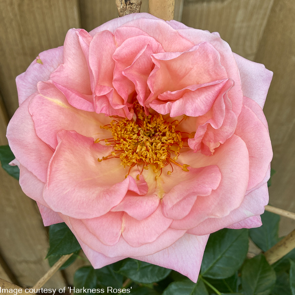 Rosa ‘Sweet Syrie’ ‘Climber’. A compact climbing rose that produces beautiful pink blooms that fade to apricot at the centre. Strong fragrance. Repeat flowering often flowering in clusters of up to 5 blooms. Ht: 2.5m x 2.5m