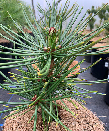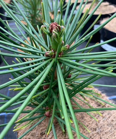 Compact pyramidal form of umbrella pine with dark green needles. Ht 2.0-3.0 m x spr 1m.