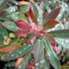 Sumptuously coloured fleshy foliage with year round appeal. New growth dark maroon on red stems deepening to glossy chocolate. Pink/red flowers, mid summer. Ht 12-24″ (30-60cm). Full sun, well drained soil. Dry tolerant once established.