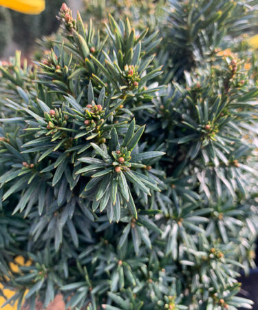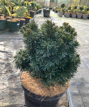 A very slow growing yew with very dense, dark green foliage forming a flattened globose bush. Ht 30cm x Spr 40cm in 10 years.
