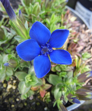 Low tufts of yellow ovate foliage. Short dense spikes of bright blue flowers, May/