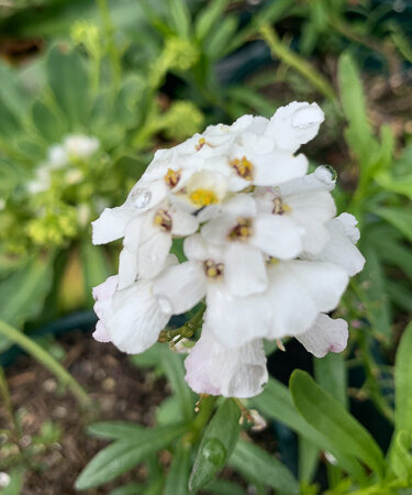 Compact cushions of fresh green foliage, attractive purple and lavender white pansy flowers, May-Jul. Ht 6″. Cool position, sun or part shade.