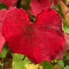 A very ornamental climber. Forming a close leafy covering of very large rounded lobed light green foliage. Foliage turning bronzy green in summer, then red/crimson in autumn. Small purple grapes. Well drained, sun.